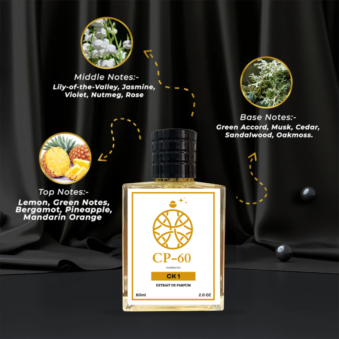 One is a Citrus Aromatic fragrance for women and men. Top notes are Lemon, Green Notes, Bergamot, Pineapple, Mandarin Orange, Cardamom and Papaya; middle notes are Lily-of-the-Valley, Jasmine, Violet, Nutmeg, Rose, Orris Root and Freesia; base notes are Green Accord, Musk, Cedar, Sandalwood, Oakmoss, Green Tea and Amber.