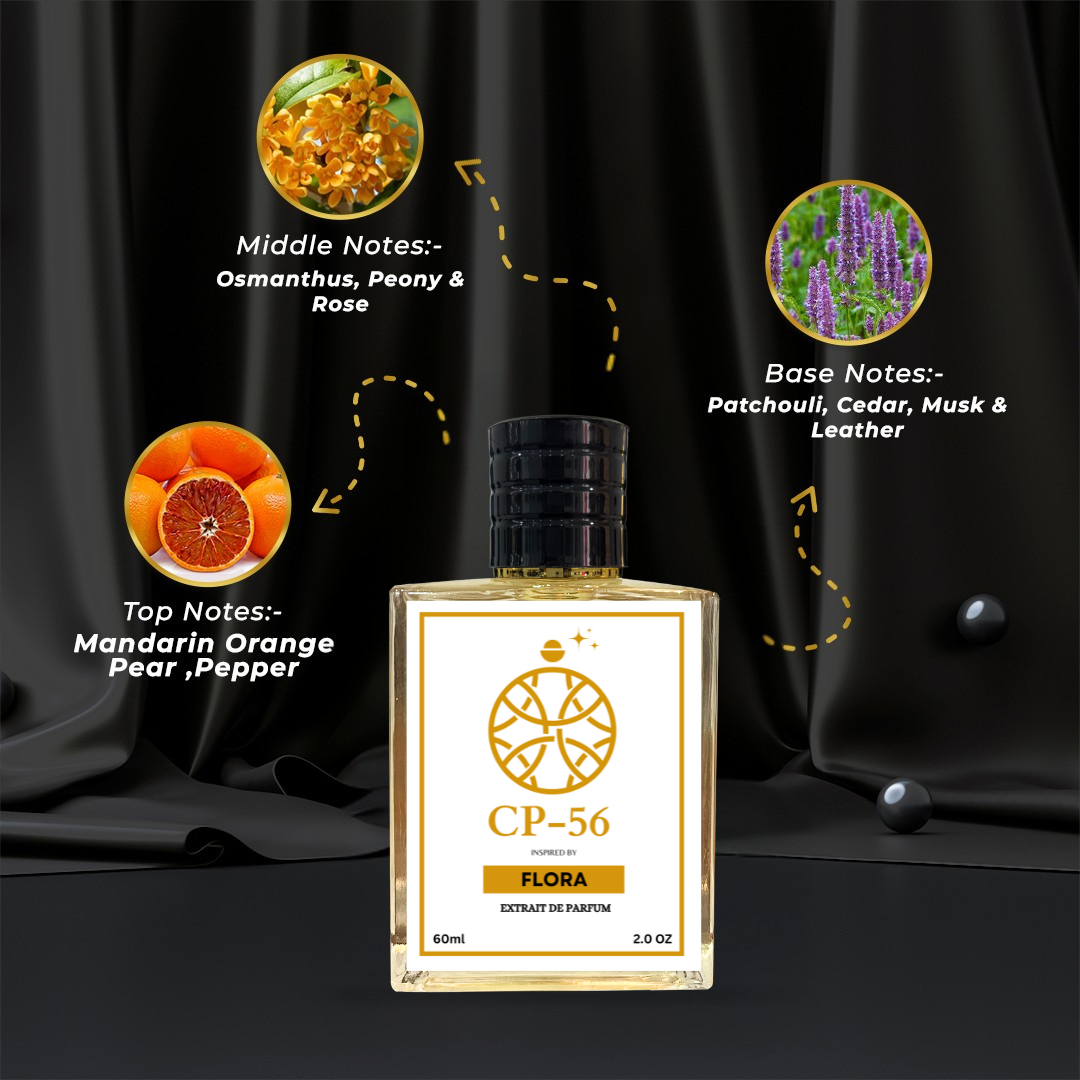 flora gorgeous for women is a joyful floral perfume. Top note is Mandarin and pepper ; middle note is Osmanthus, peony and rose ; base note is Patchouli, cedar and leather .
