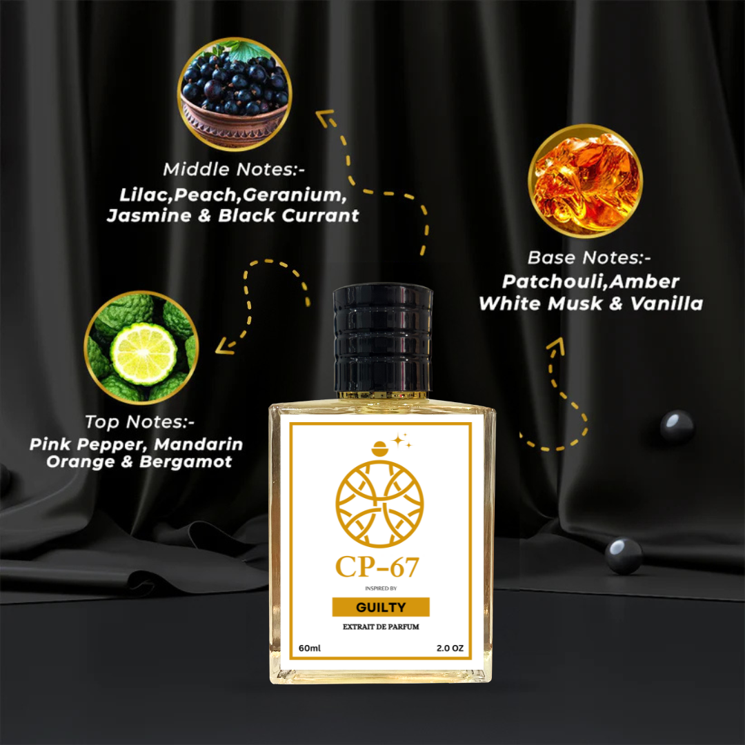 Guilty Pour Homme is a Woody Aromatic fragrance for men & Women. Top notes are Lavender and Amalfi Lemon; middle note is African Orange flower; base notes are Virginia Cedar, Patchouli and Vanilla.